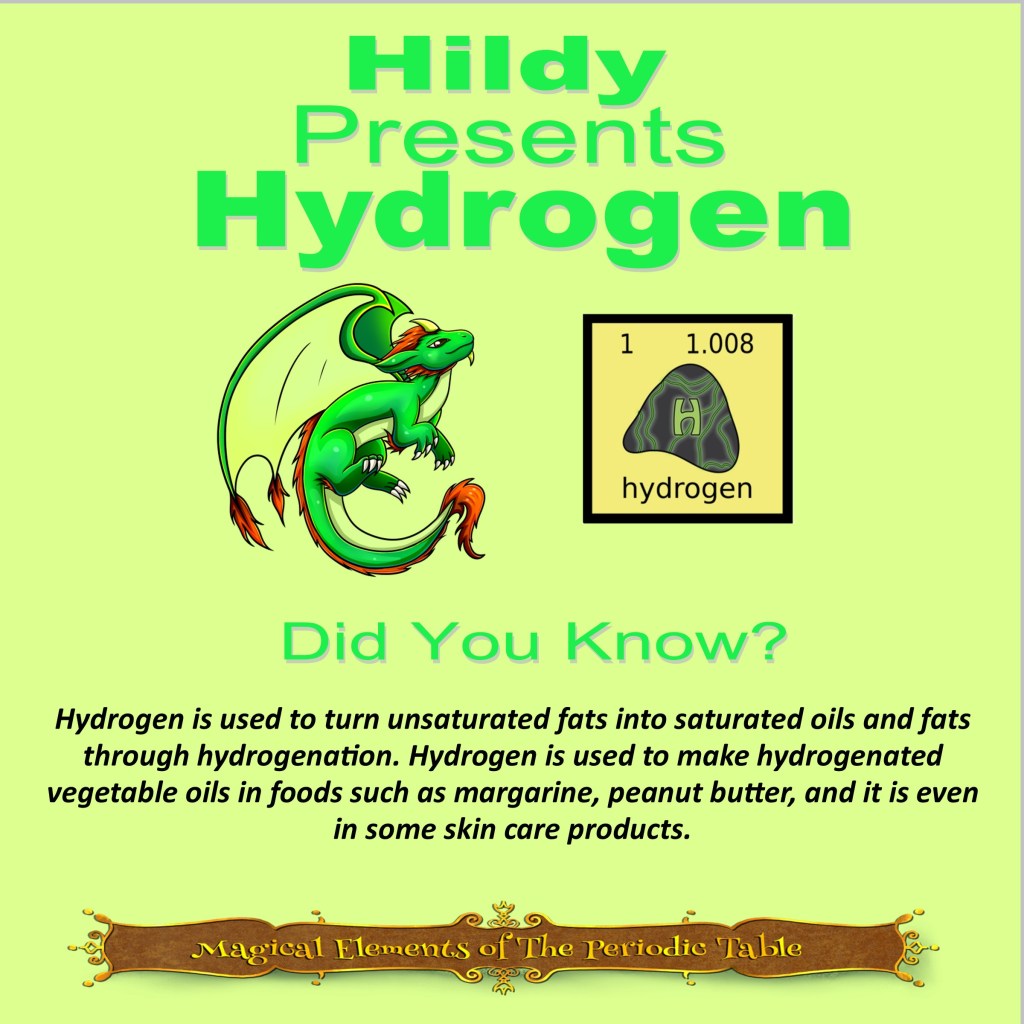 This article is brought to you by Sybrina Durant, the author of the middle grade picture book, Magical Elements of the Periodic Table Presented Alphabetically By The Elemental Dragons. Learn More. In that book Hydrogen is presented by the dragon, Hildy.
