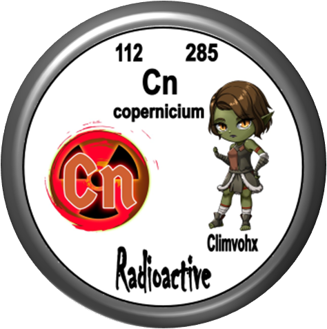 This is the front side of the game card for Climvohx the Radioactive Goblin fueled by Copernicium. Click the pic to take a look at all the fun info on the back. Use it as a memorization tool, a trading card or as science class prizes and rewards.