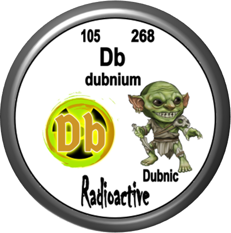 This is the front side of the game card for Rukukz the Radioactive Goblin Fueled By Rutherfordium. Click the pic to take a look at all the fun info on the back. Use it as a memorization tool, a trading card or as science class prizes and rewards.