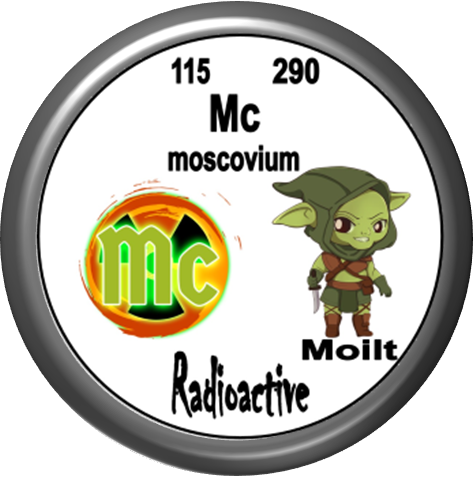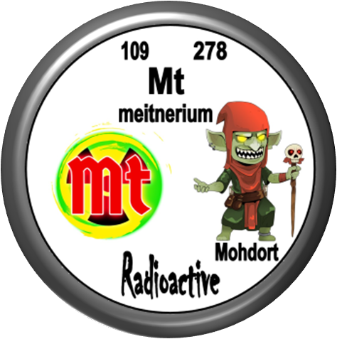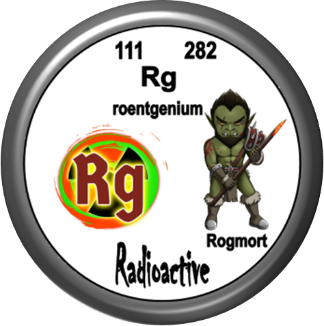 This is the front side of the game card for Rogmort the Radioactive Goblin Fueled By Roentgenium. Click the pic to take a look at all the fun info on the back. Use it as a memorization tool, a trading card or as science class prizes and rewards.