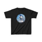The kids heavy cotton tee is perfect for everyday use. The fabric is 100% cotton for solid colors. Polyester is included for heather-color variants. The shoulders have twill tape for improved durability. The collar is curl resistant due to ribbed knitting. There are no seams along the sides.