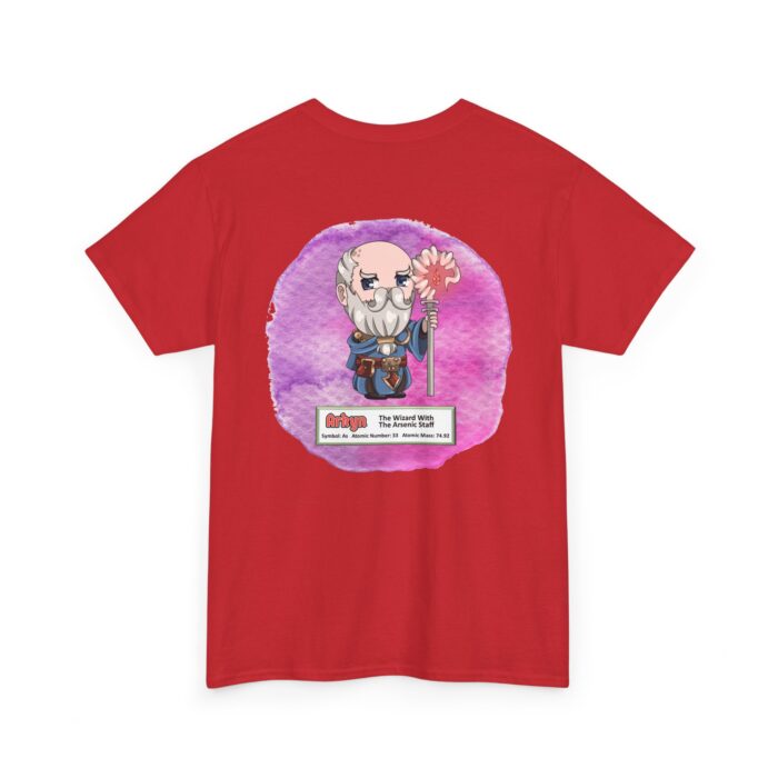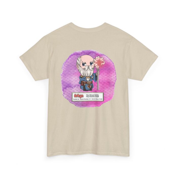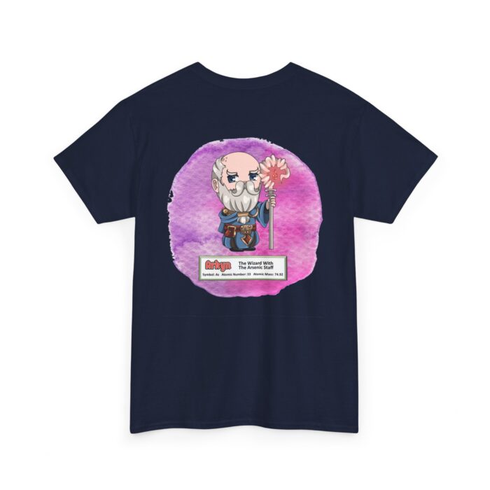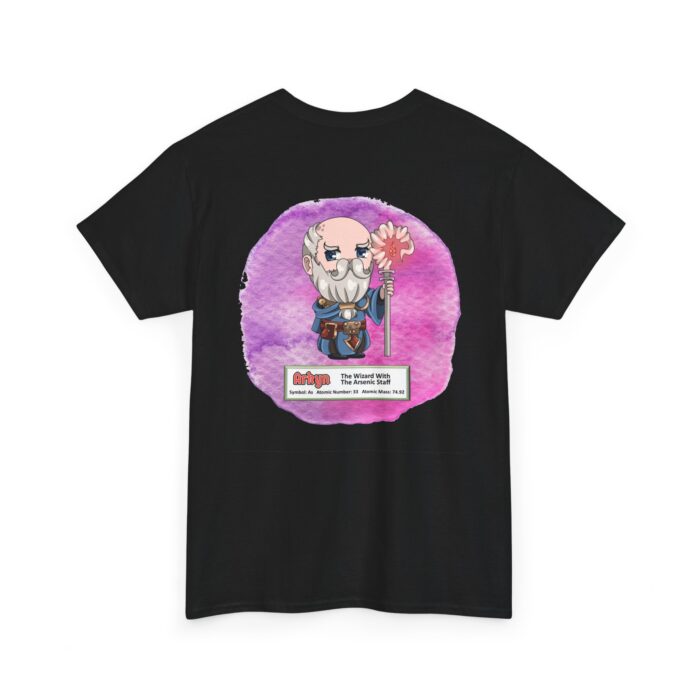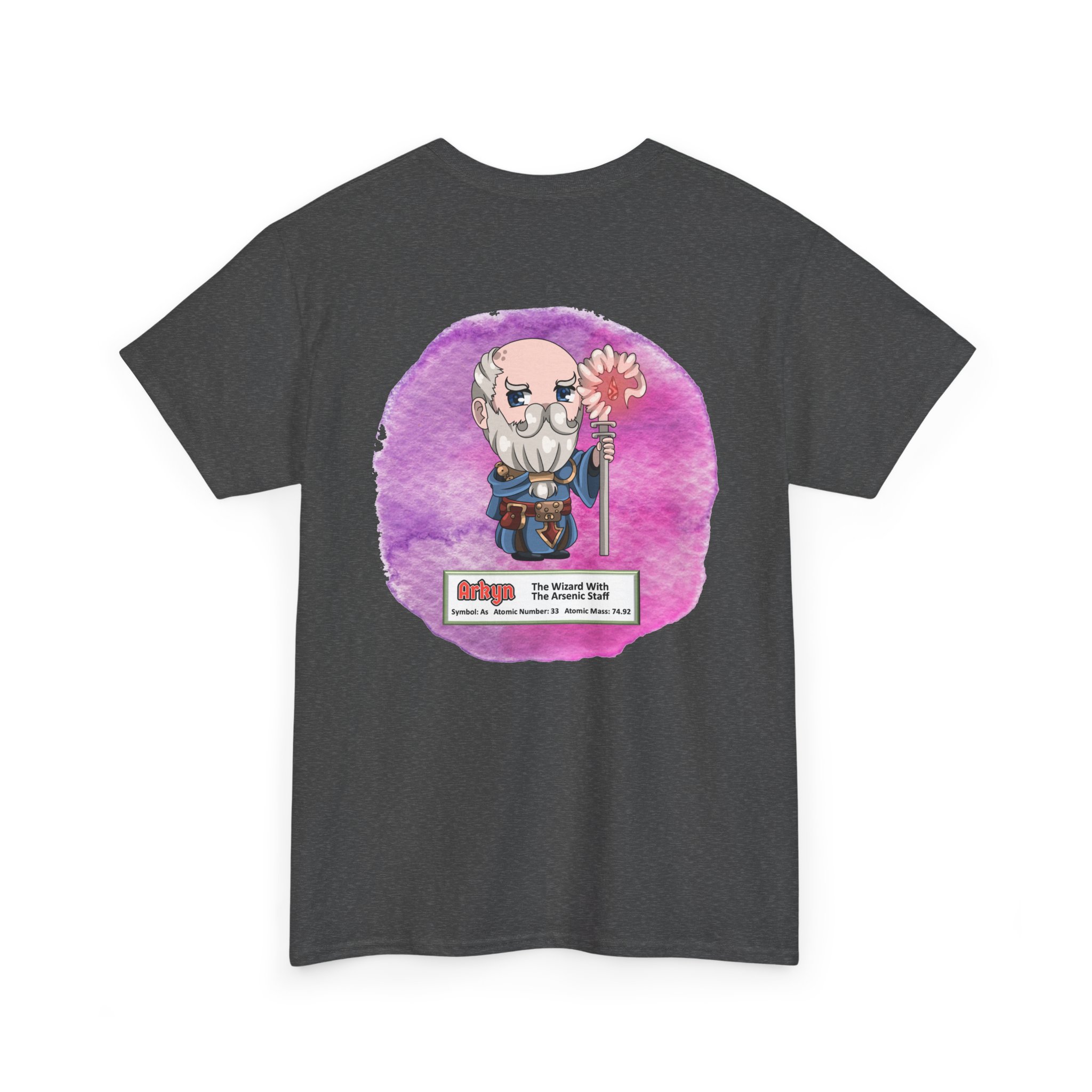 Arkyn Presents Arsenic Unisex Tee – Graphic from Magical Elements of the Periodic Table – No Metal No Magic Logo on Front, Arkyn the Wizard on the Back.