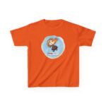 The kids heavy cotton tee is perfect for everyday use. The fabric is 100% cotton for solid colors. The shoulders have twill tape for improved durability. The collar is curl resistant due to ribbed knitting. There are no seams along the sides.