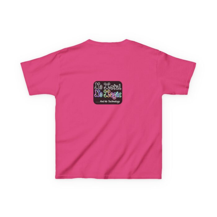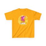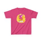 The kids heavy cotton tee is perfect for everyday use. The fabric is 100% cotton for solid colors. Polyester is included for heather-color variants. These fabrics are prime materials for printing. The shoulders have twill tape for improved durability. The collar is curl resistant due to ribbed knitting. There are no seams along the sides.