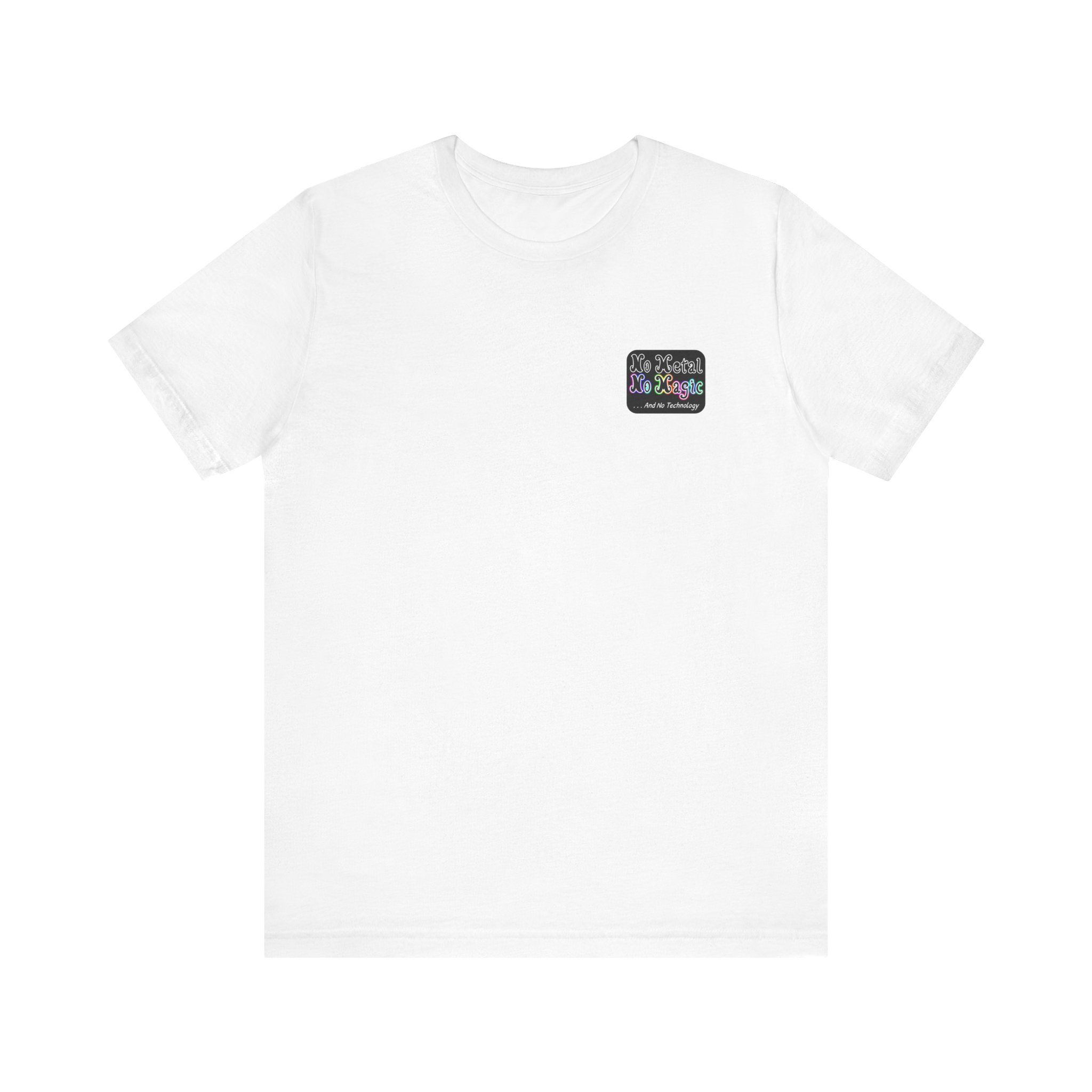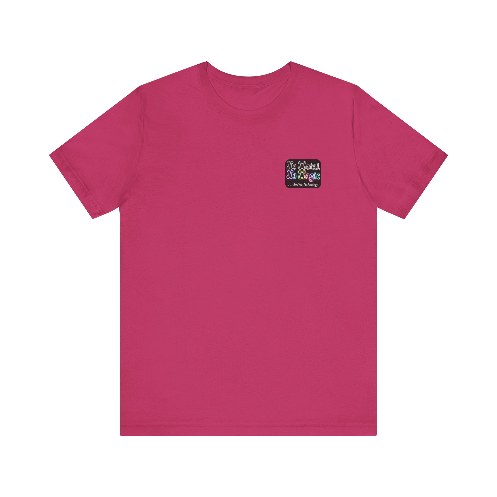 Bitsy Presents Bismuth Unisex Tee – Graphic from Magical Elements of the Periodic Table. Graphic from Magical Elements of the Periodic Table – No Metal No Magic Logo on Front, Bitsy the Dragon on the Back.