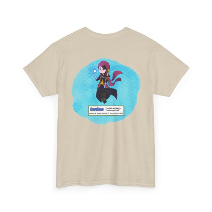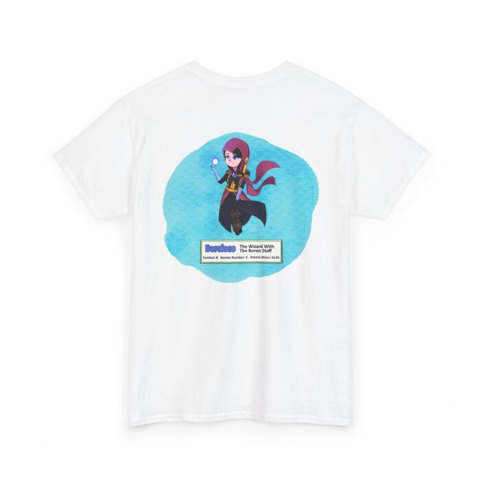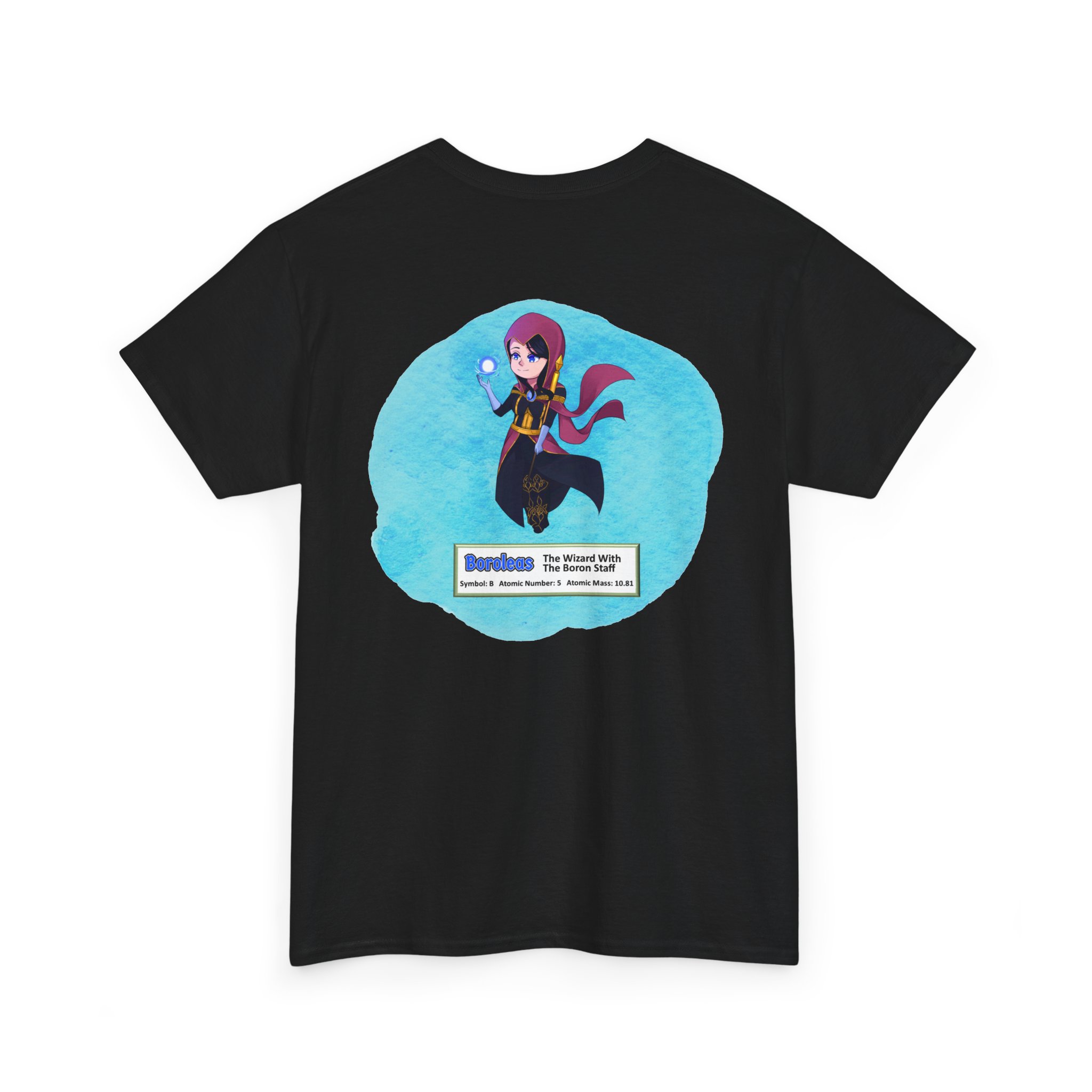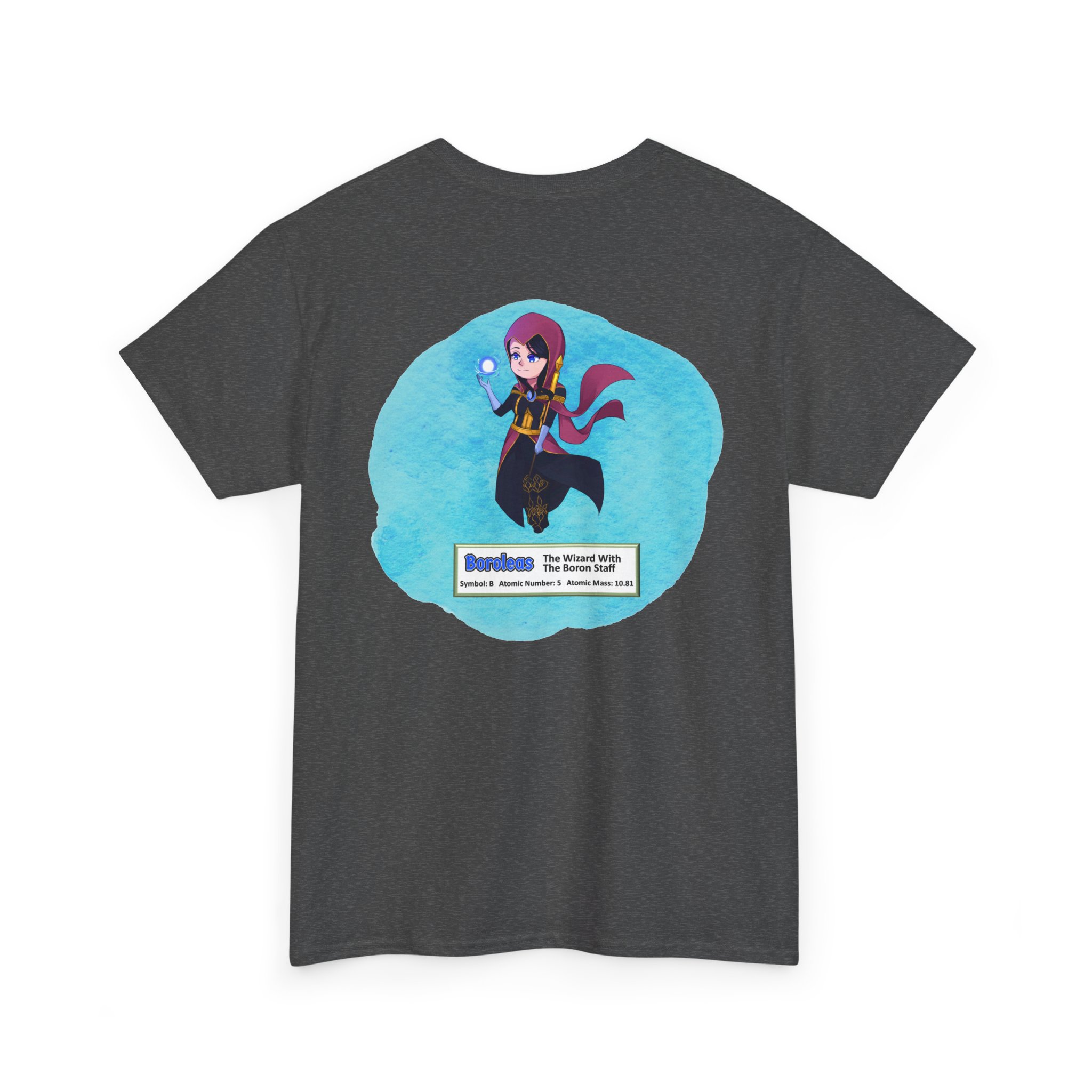 Boroleas Presents Boron Unisex Tee –  Graphic from Magical Elements of the Periodic Table – No Metal No Magic Logo on Front, Boroleas the Wizard on the Back.