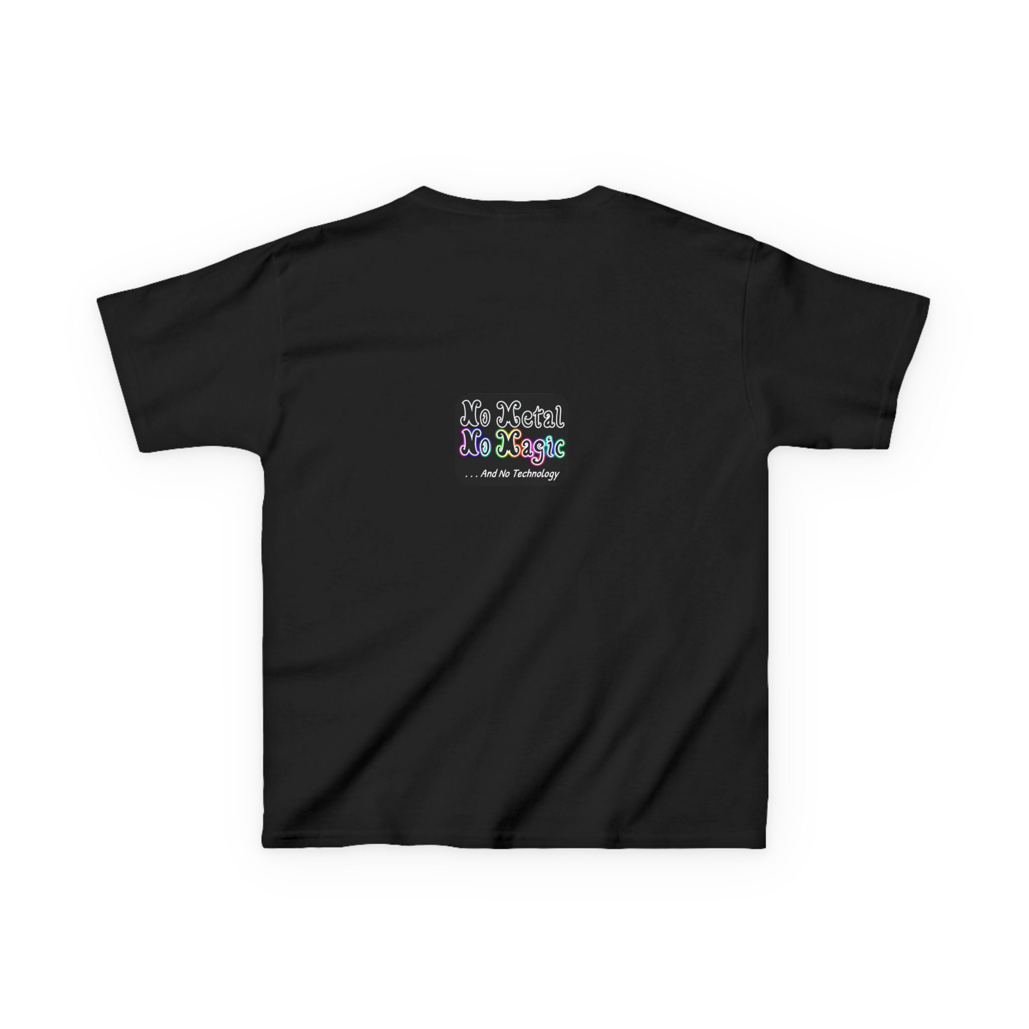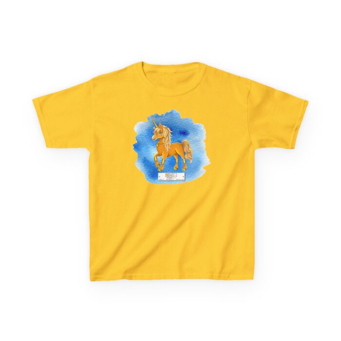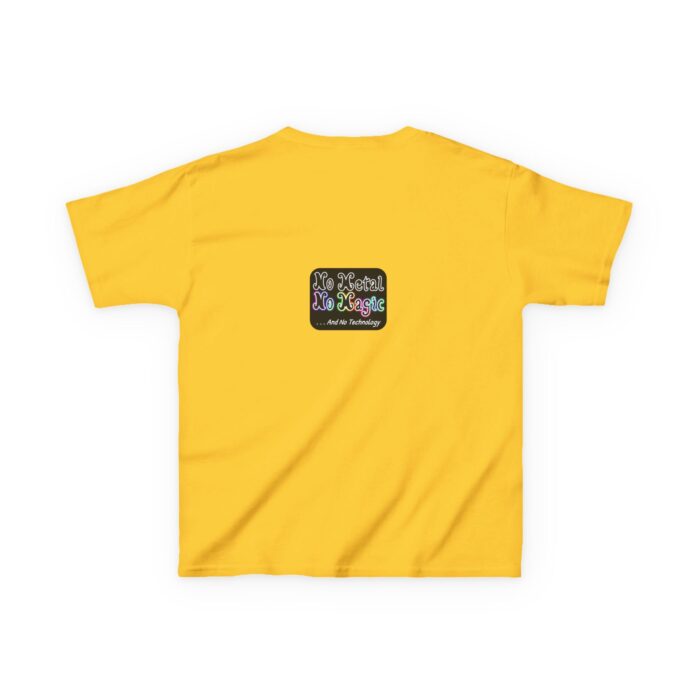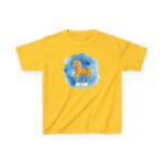 The kids heavy cotton tee is perfect for everyday use. The fabric is 100% cotton for solid colors. Polyester is included for heather-color variants. These fabrics are prime materials for printing. The shoulders have twill tape for improved durability. The collar is curl resistant due to ribbed knitting. There are no seams along the sides.