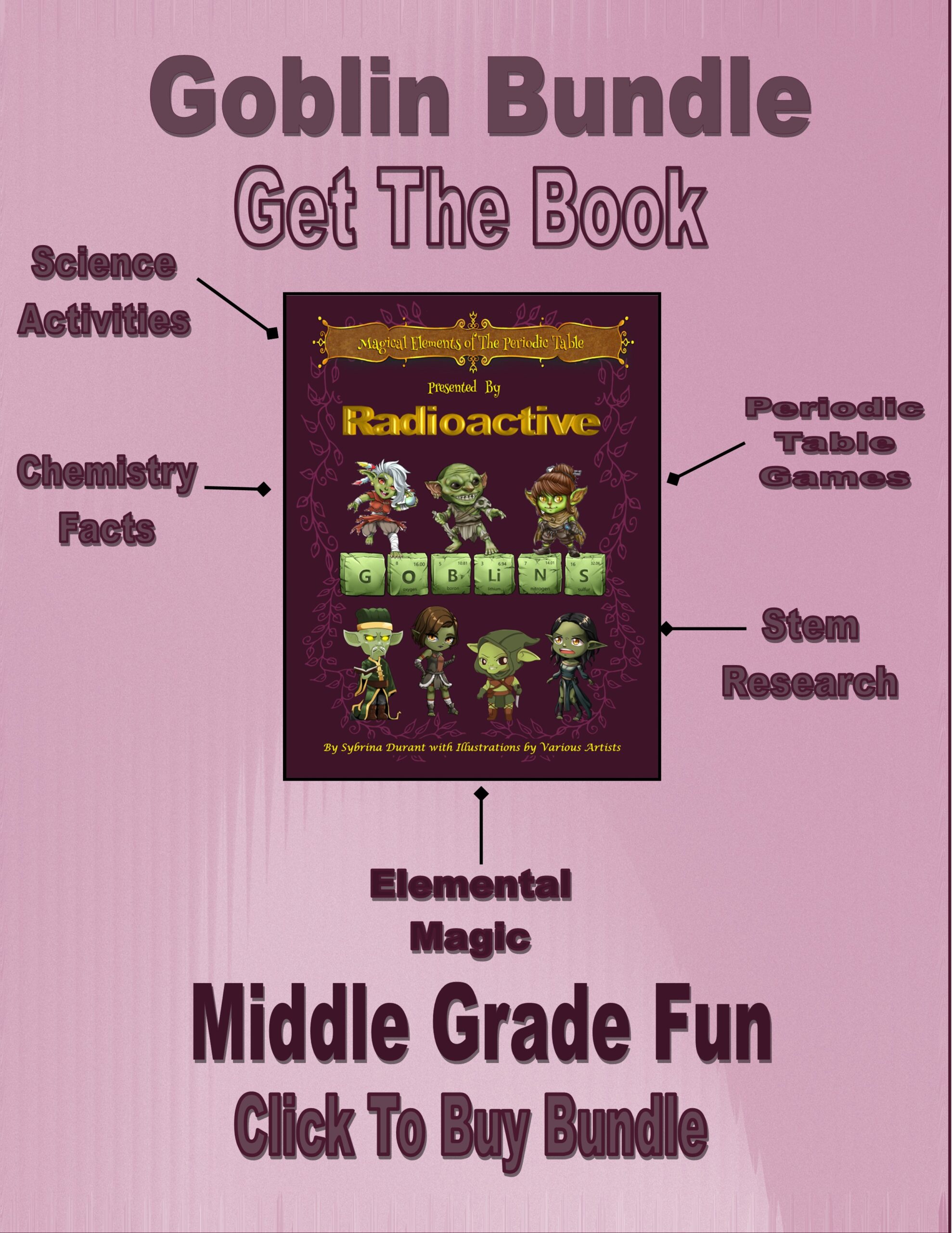 The book: Embark on an enchanting adventure through the world of chemistry with *Magical Elements of the Periodic Table*, where 15 whimsical Radioactive Goblins lead you into the captivating realm of the periodic table. Each goblin, powered by a unique radioactive element, reveals the magical properties and real-life applications of these metals, transforming science into a fantastical journey!