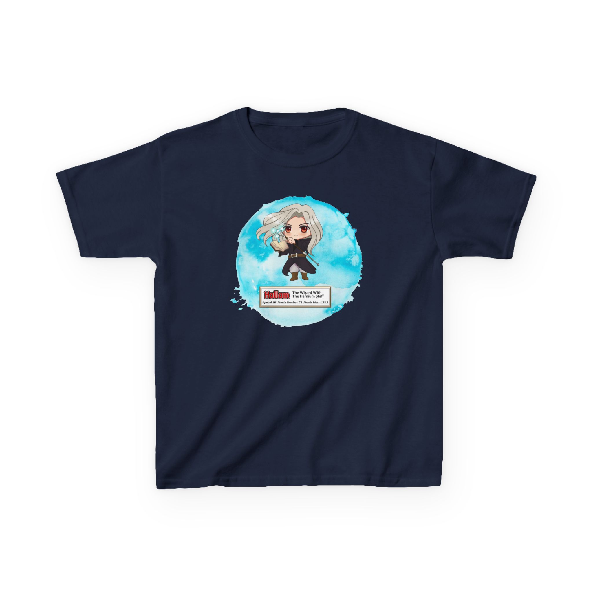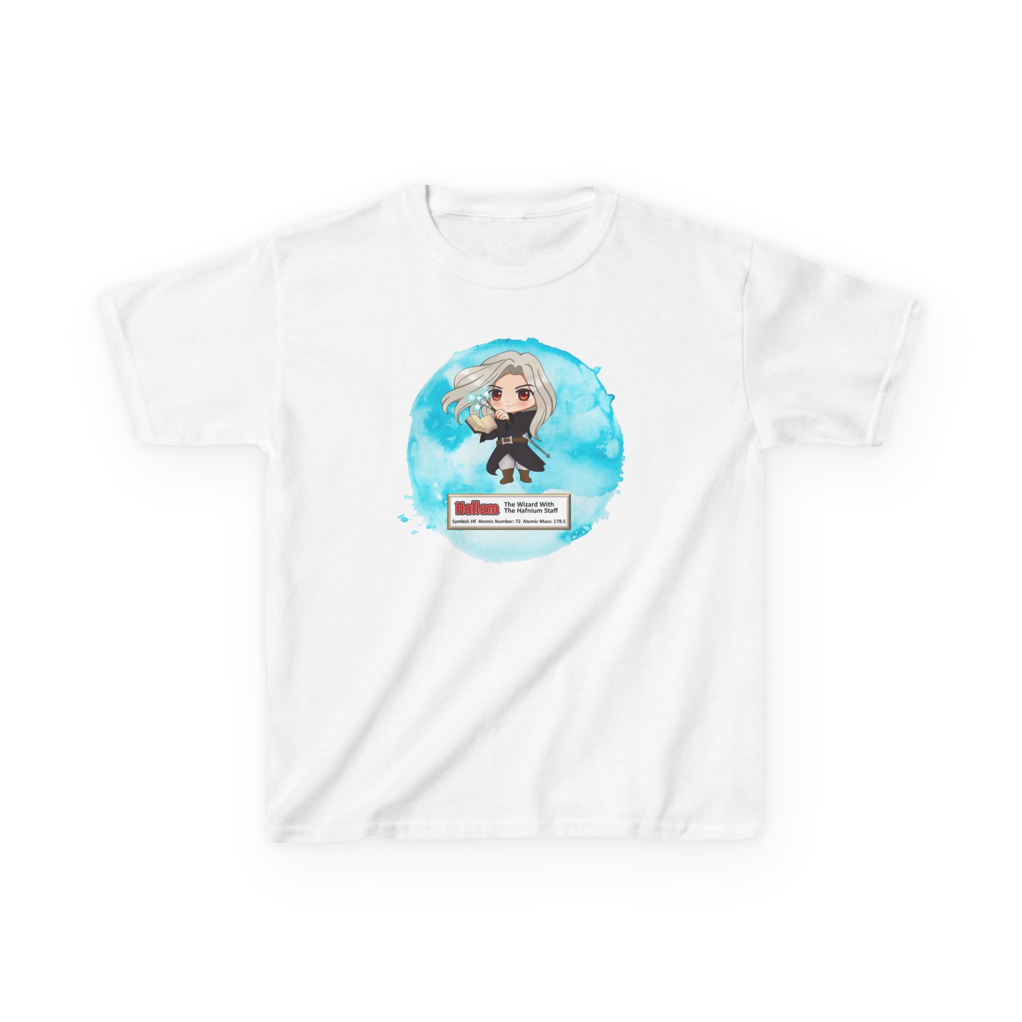 Hallam Presents Hafnium Kid Tee – Cute Wizard introduces a periodic table element. Fun way to get kids interested in science.