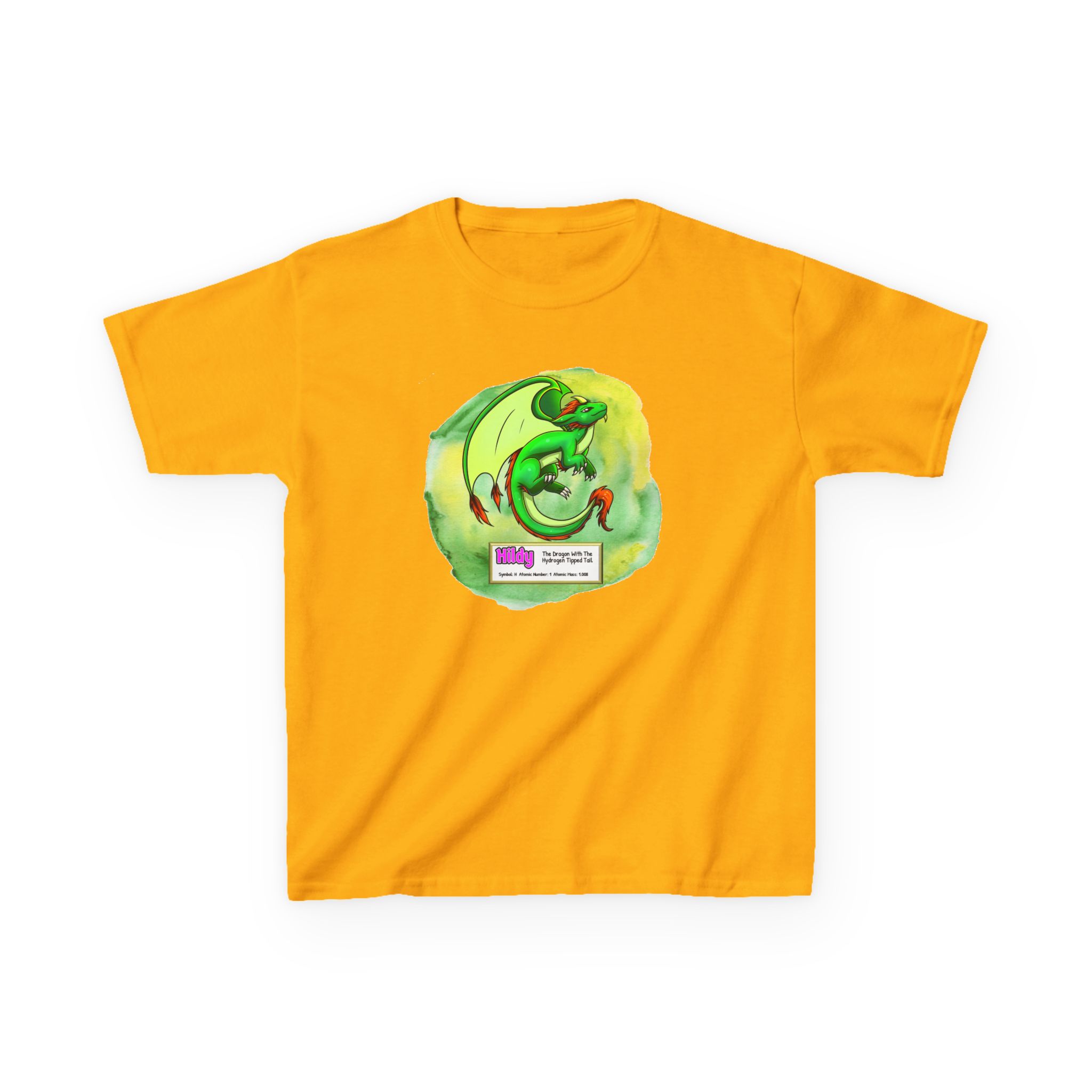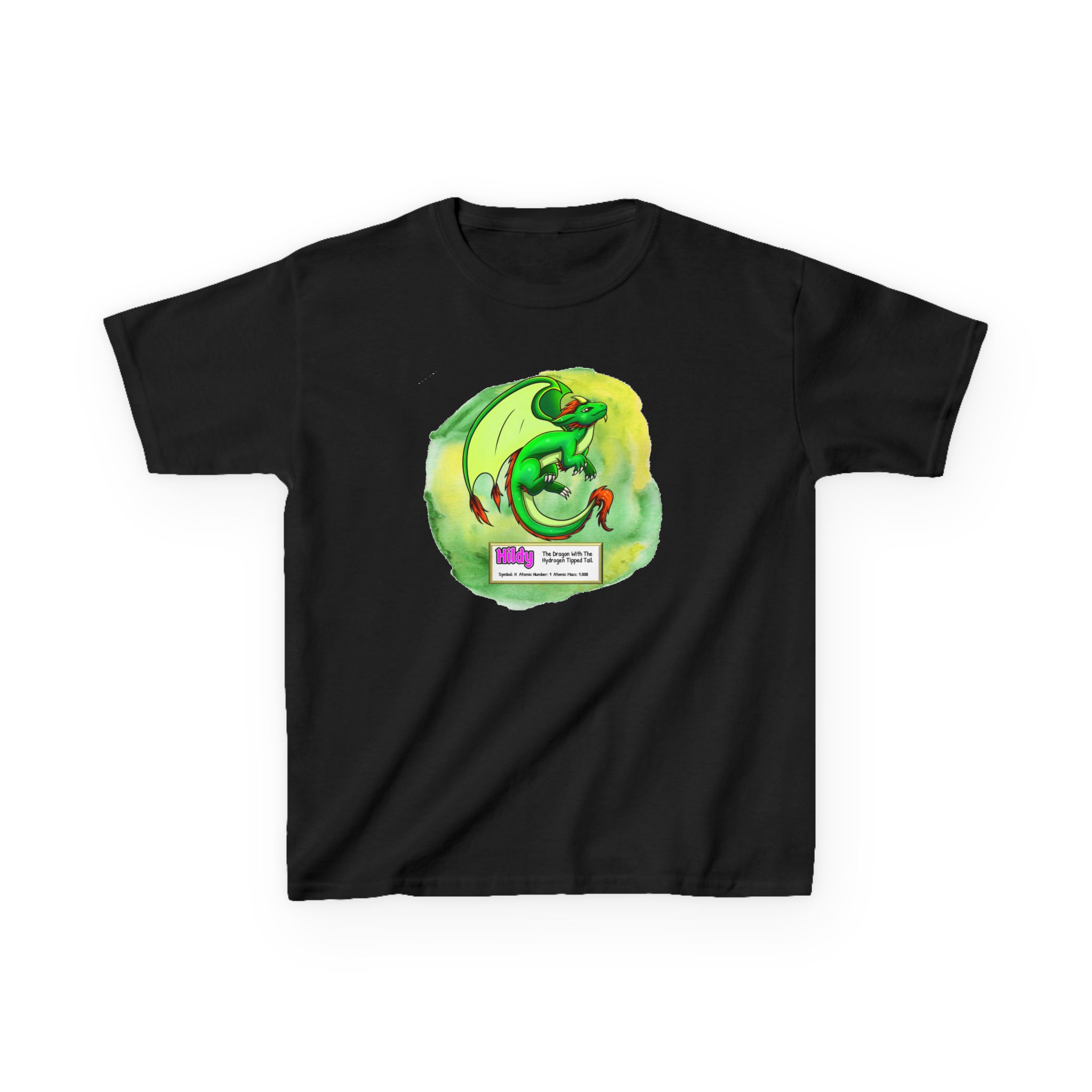 Hildy Presents Hydrogen Kid Tee – Cute Dragon introduces a periodic table element. Fun way to get kids interested in science.