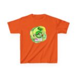 The kids heavy cotton tee is perfect for everyday use. The fabric is 100% cotton for solid colors. The shoulders have twill tape for improved durability. The collar is curl resistant due to ribbed knitting. There are no seams along the sides.