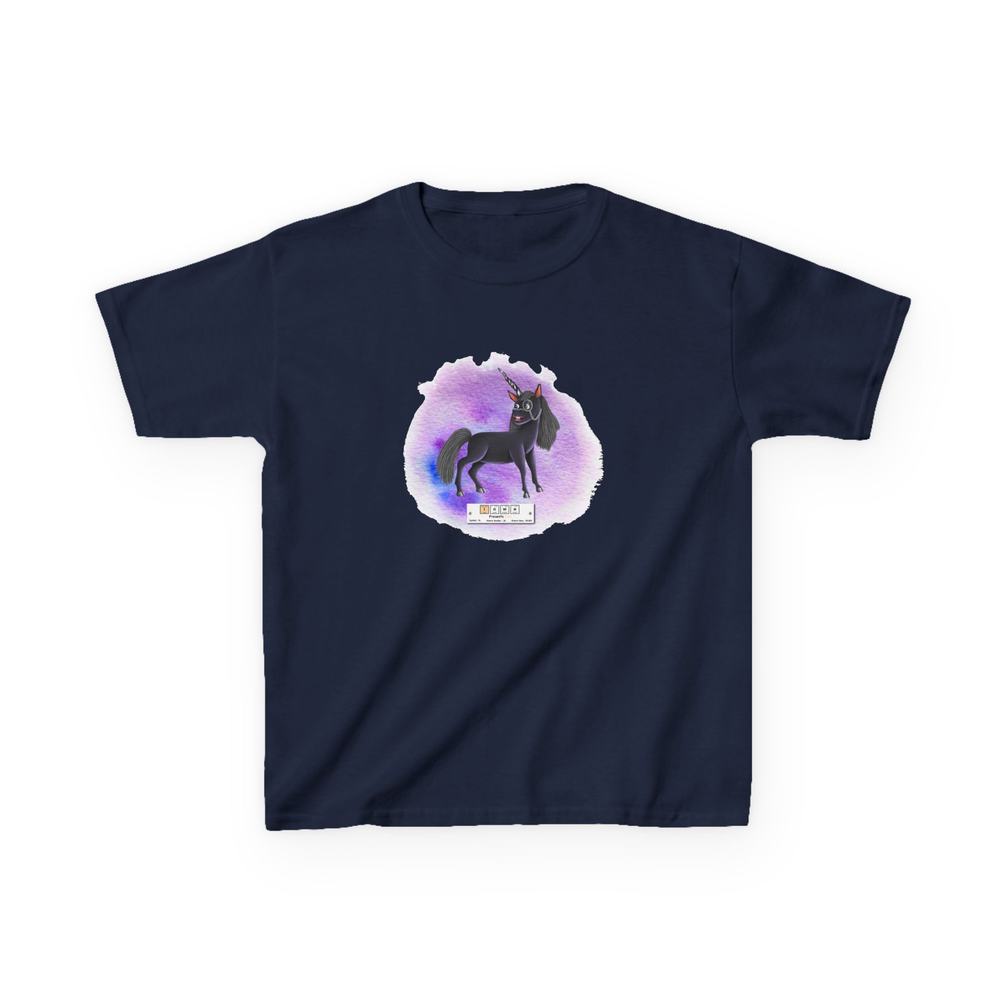 Iown Presents Iron Kid Tee – Cute Unicorn introduces a periodic table element. Fun way to get kids interested in science.