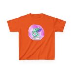 The kids heavy cotton tee is perfect for everyday use. The fabric is 100% cotton for solid colors. The shoulders have twill tape for improved durability. The collar is curl resistant due to ribbed knitting. There are no seams along the sides.