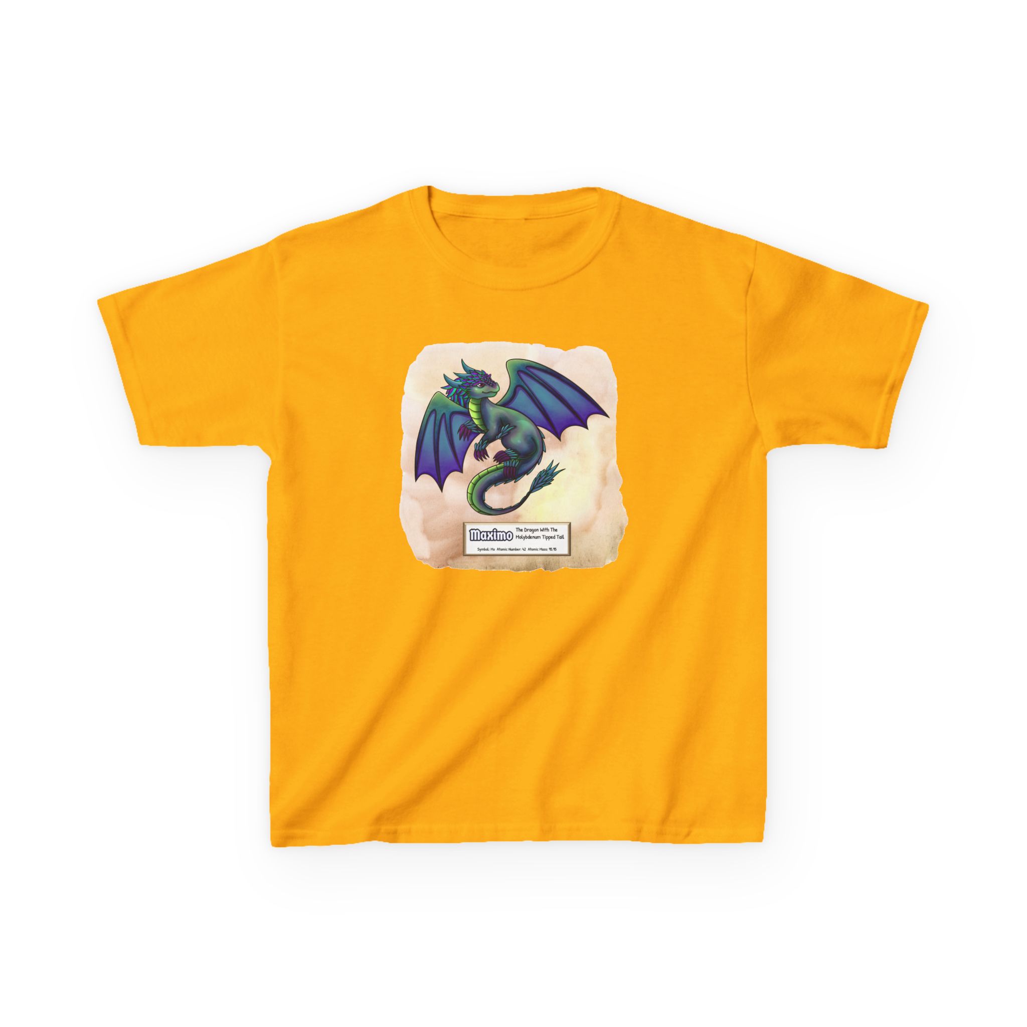Maximo Presents Molybdenum Kid Tee – Cute Dragon introduces a periodic table element. Fun way to get kids interested in science.