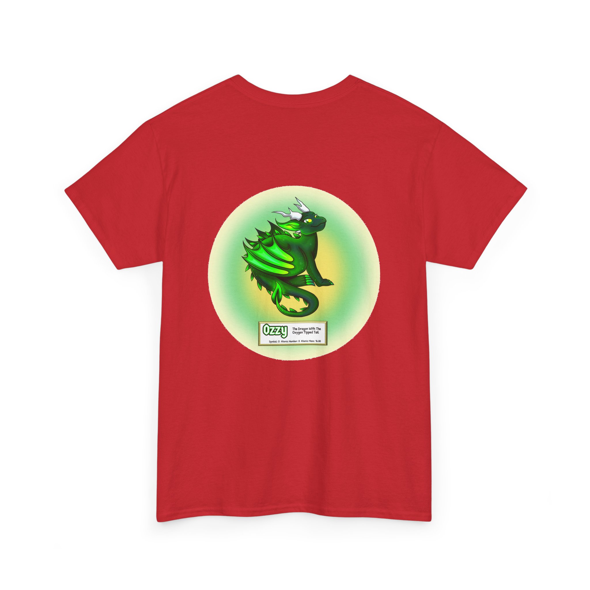 Ozzy Presents Oxygen Unisex Tee – Graphic from Magical Elements of the Periodic Table – No Metal No Magic Logo on Front, Ozzy the Dragon on the Back.