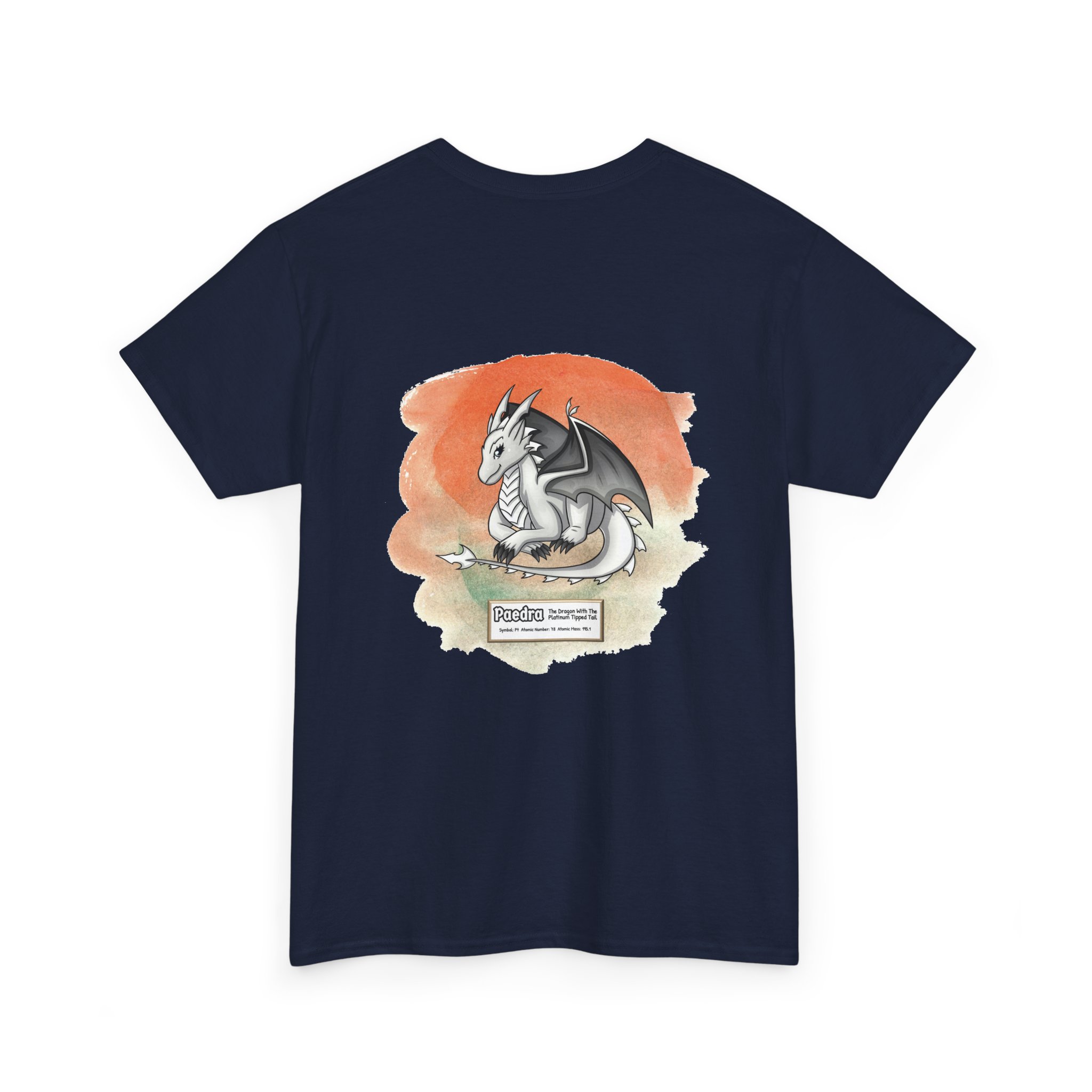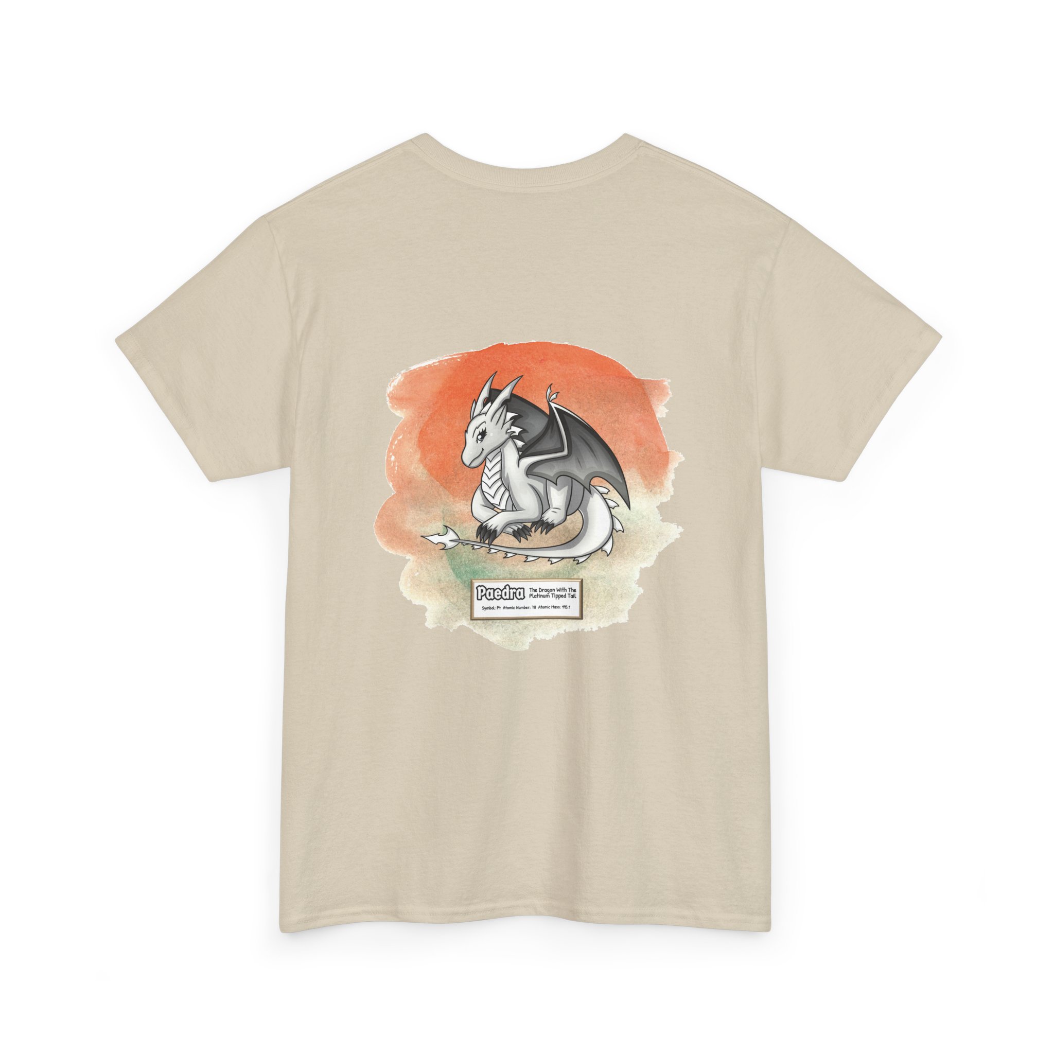 Paedra Presents Platinum Unisex Tee – Graphic from Magical Elements of the Periodic Table – No Metal No Magic Logo on Front, Paedra the Dragon on the Back.