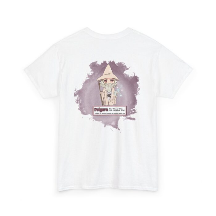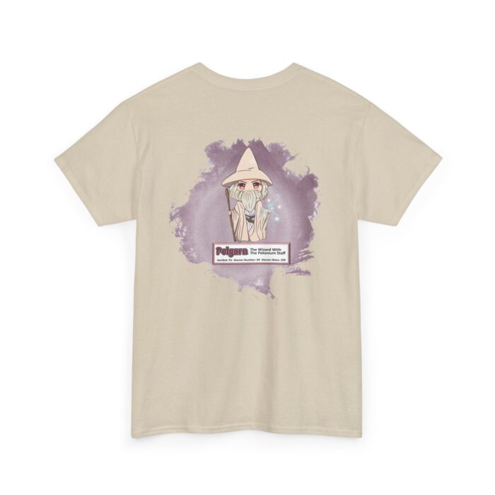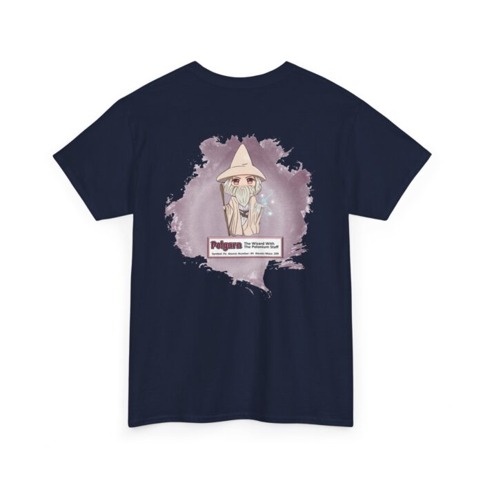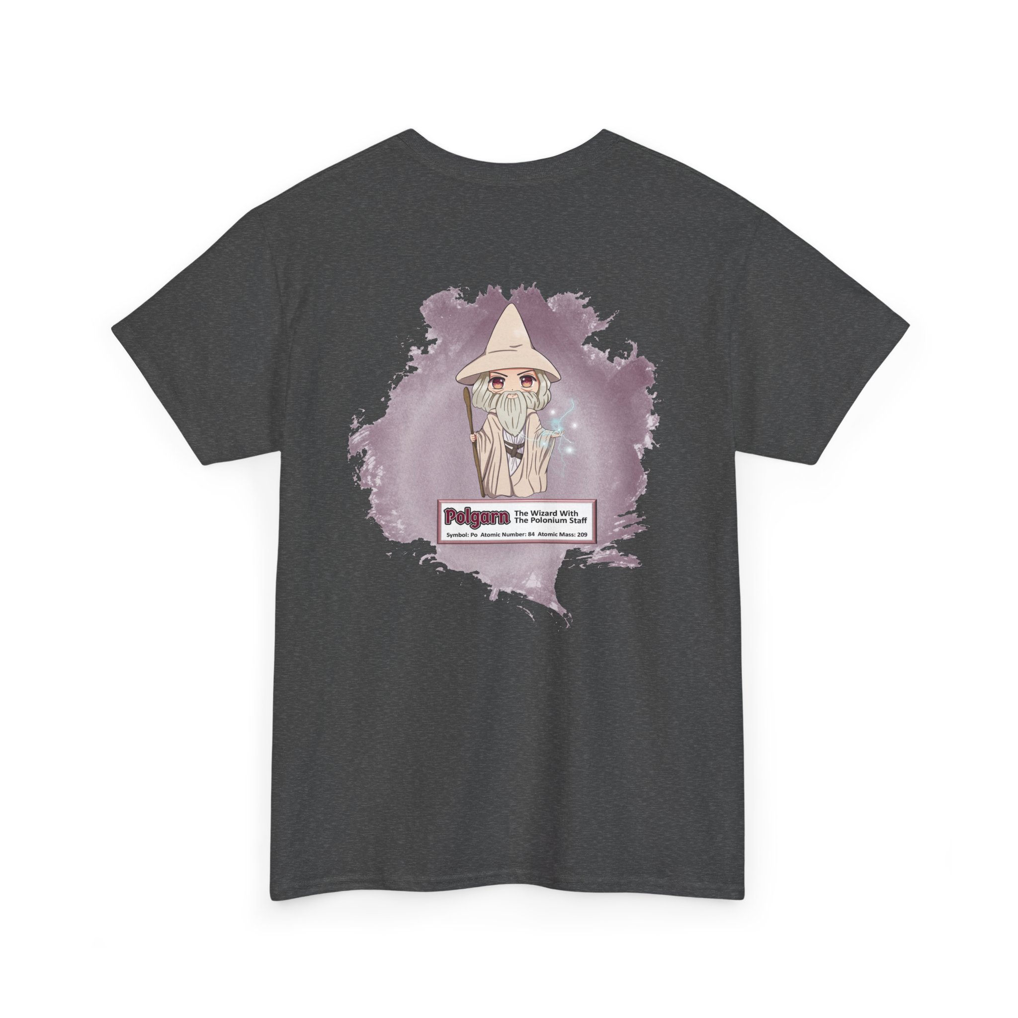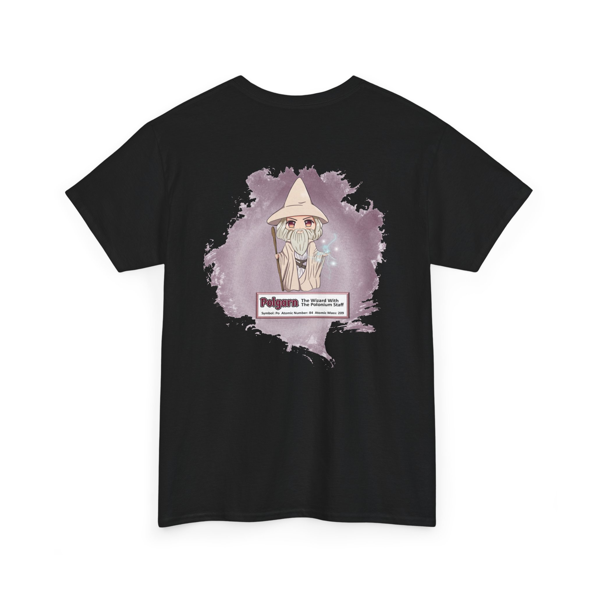 Polgarn Presents Polonium Unisex Tee – Graphic from Magical Elements of the Periodic Table – No Metal No Magic Logo on Front, Polgarn the Wizard on the Back.