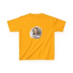 The kids heavy cotton tee is perfect for everyday use. The fabric is 100% cotton for solid colors. The shoulders have twill tape for improved durability. The collar is curl resistant due to ribbed knitting. There are no seams along the sides.