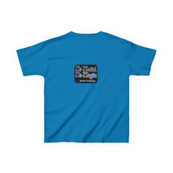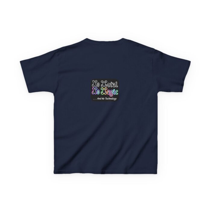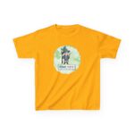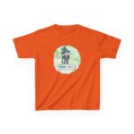 The kids heavy cotton tee is perfect for everyday use. The fabric is 100% cotton for solid colors. Polyester is included for heather-color variants. The shoulders have twill tape for improved durability. The collar is curl resistant due to ribbed knitting. There are no seams along the sides.
