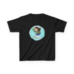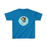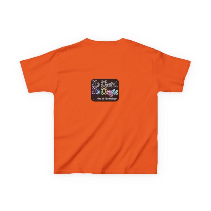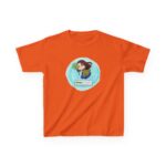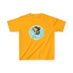 The kids heavy cotton tee is perfect for everyday use. The fabric is 100% cotton for solid colors. Polyester is included for heather-color variants. The shoulders have twill tape for improved durability. The collar is curl resistant due to ribbed knitting. There are no seams along the sides.