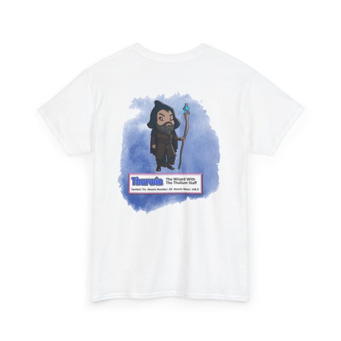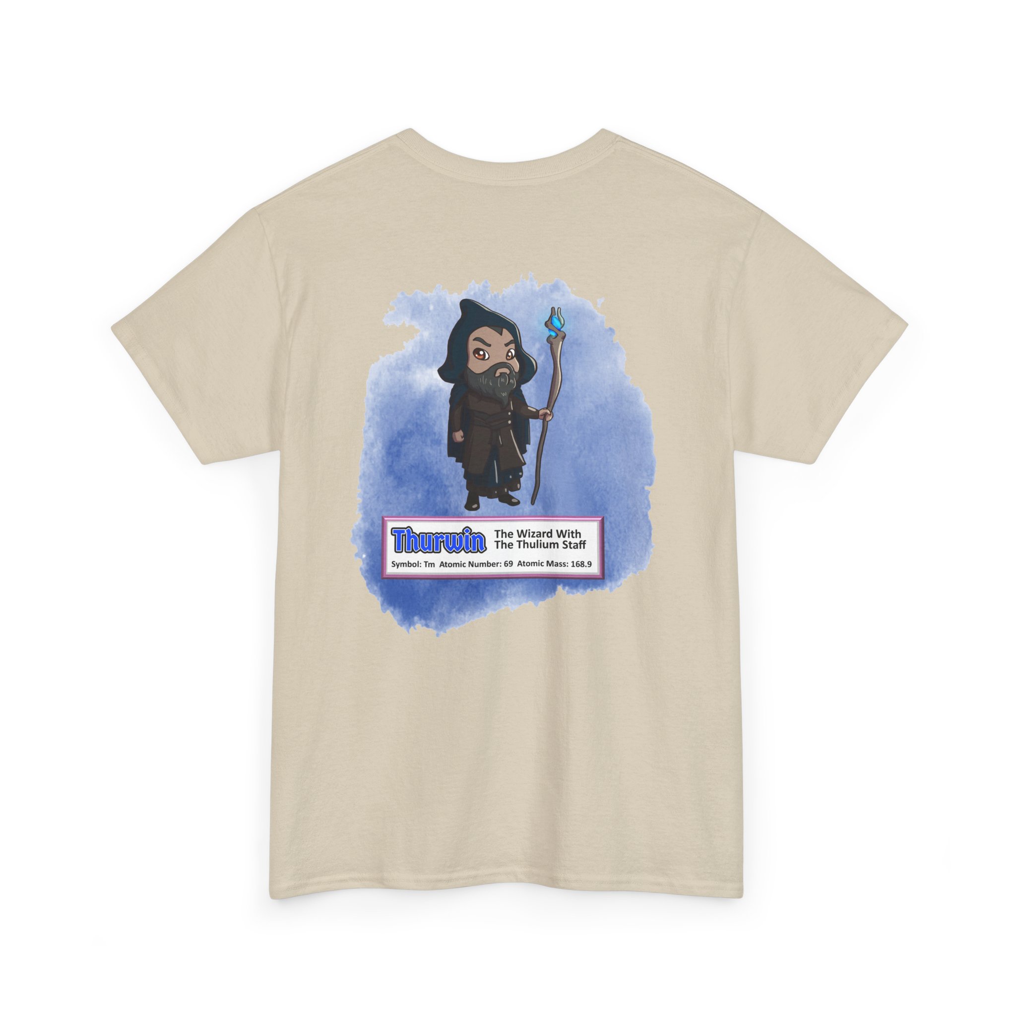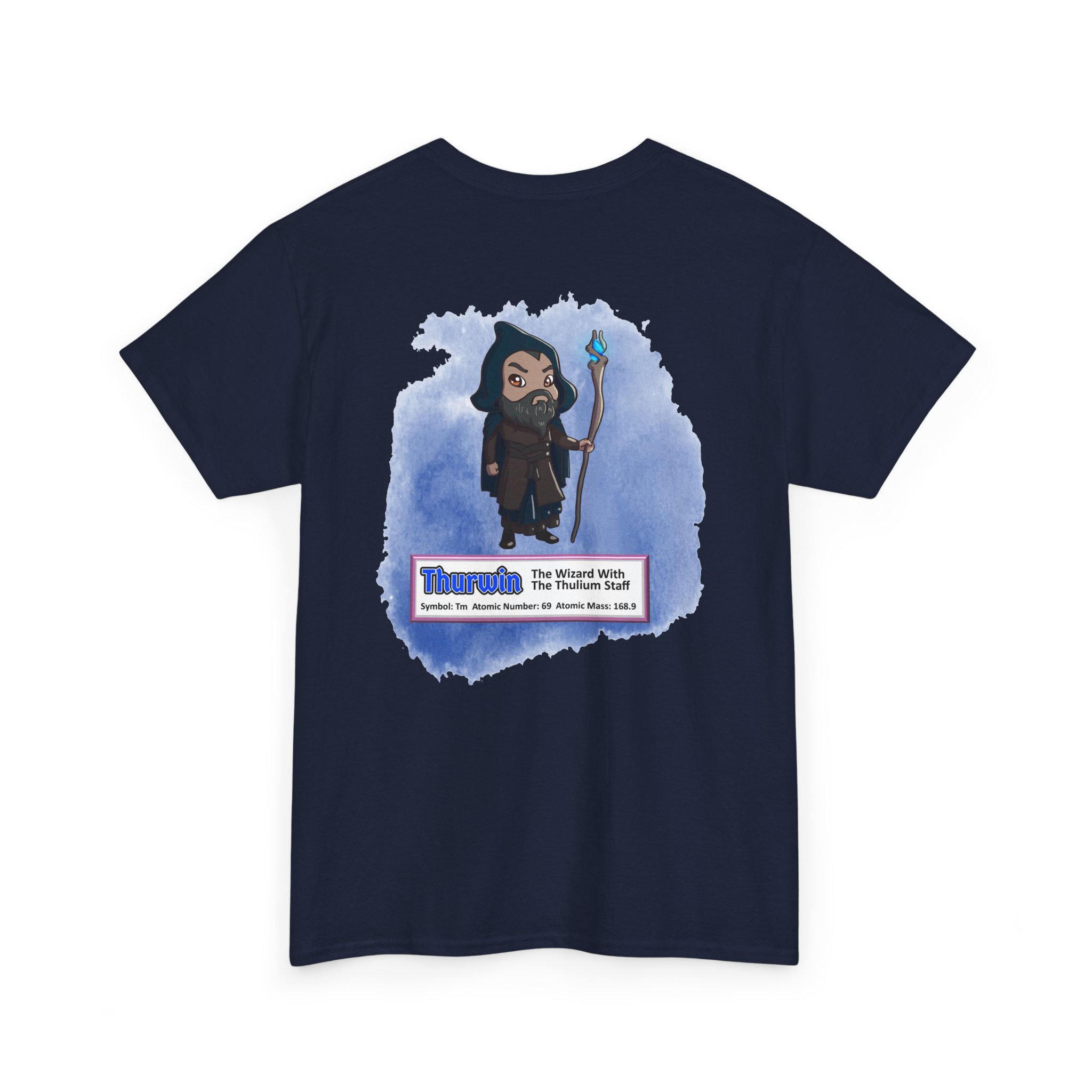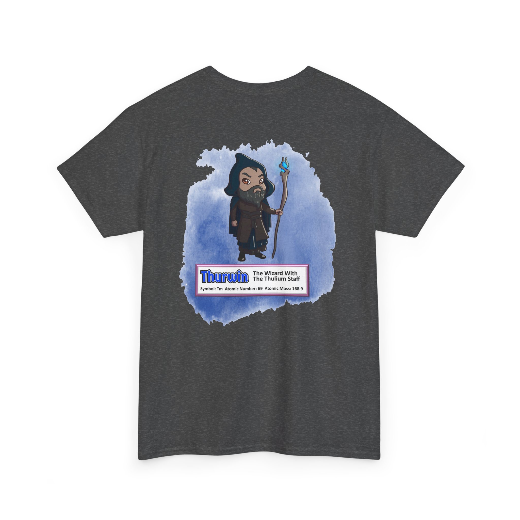 Thurwin Presents Thulium Unisex Tee-  Graphic from Magical Elements of the Periodic Table – No Metal No Magic Logo on Front, Thurwin the Wizard on the Back.