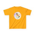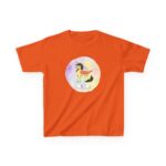 The kids heavy cotton tee is perfect for everyday use. The fabric is 100% cotton for solid colors. The shoulders have twill tape for improved durability. The collar is curl resistant due to ribbed knitting. There are no seams along the sides.
