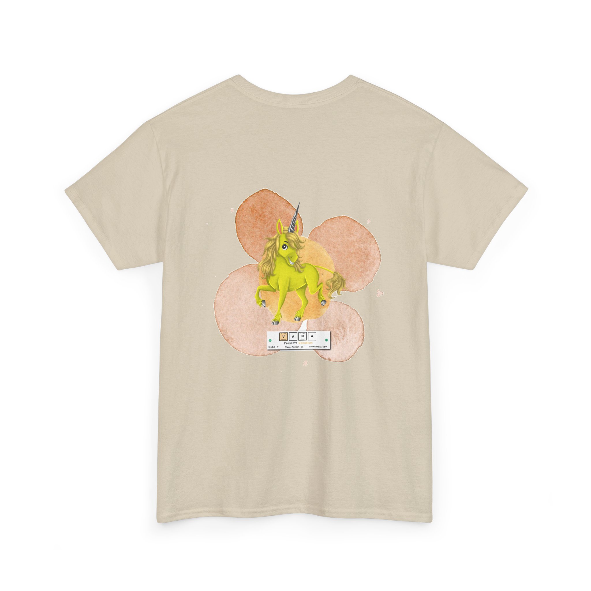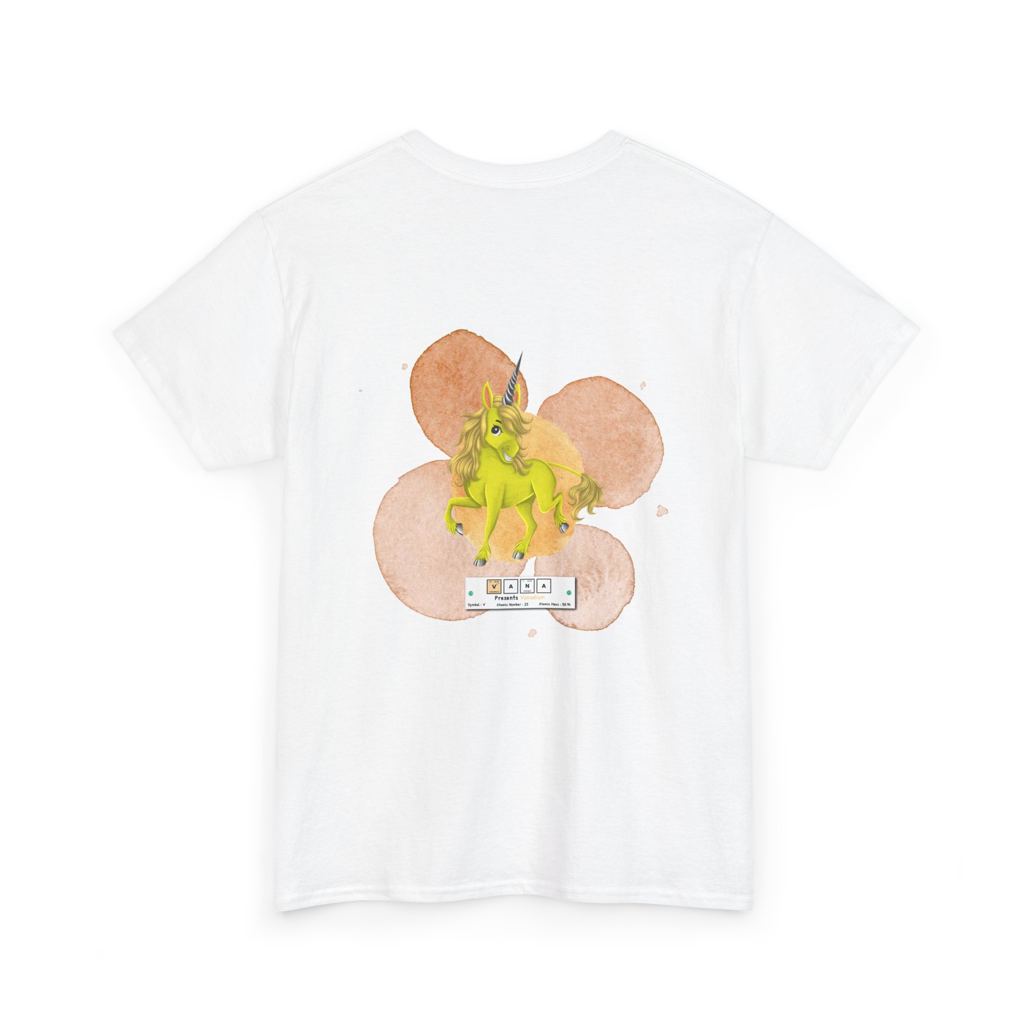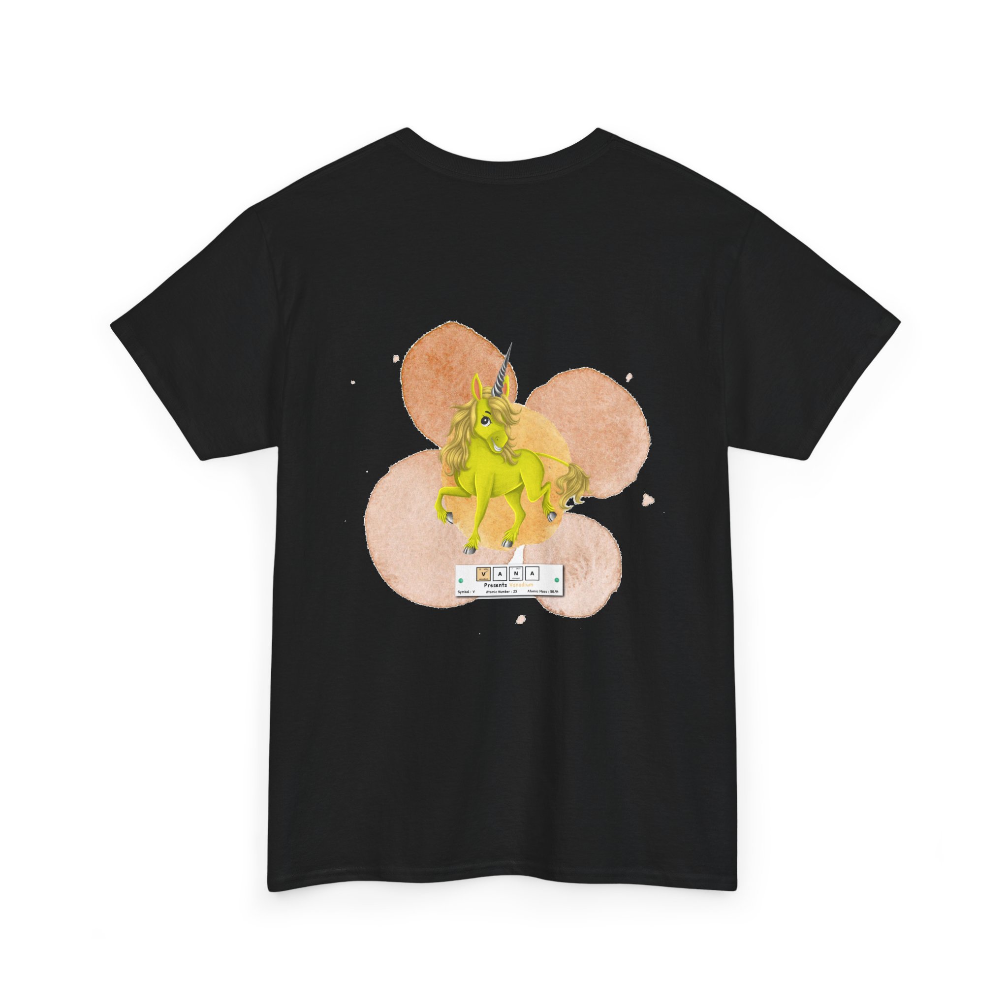 Vana Presents Vanadium Unisex Tee – Graphic from Magical Elements of the Periodic Table – No Metal No Magic Logo on Front, Vana the Unicorn on the Back.