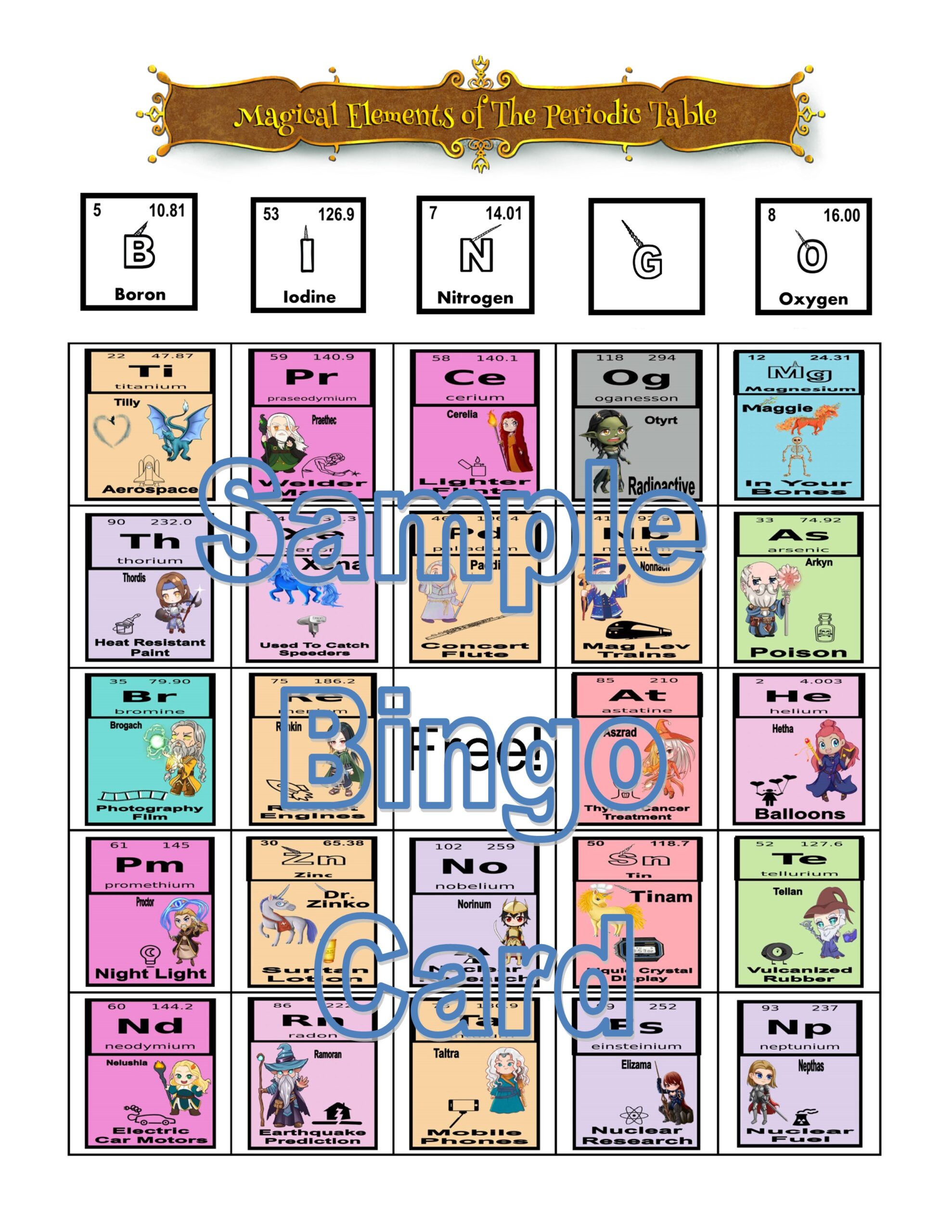 Magical Elemental Periodic Table Bingo Game