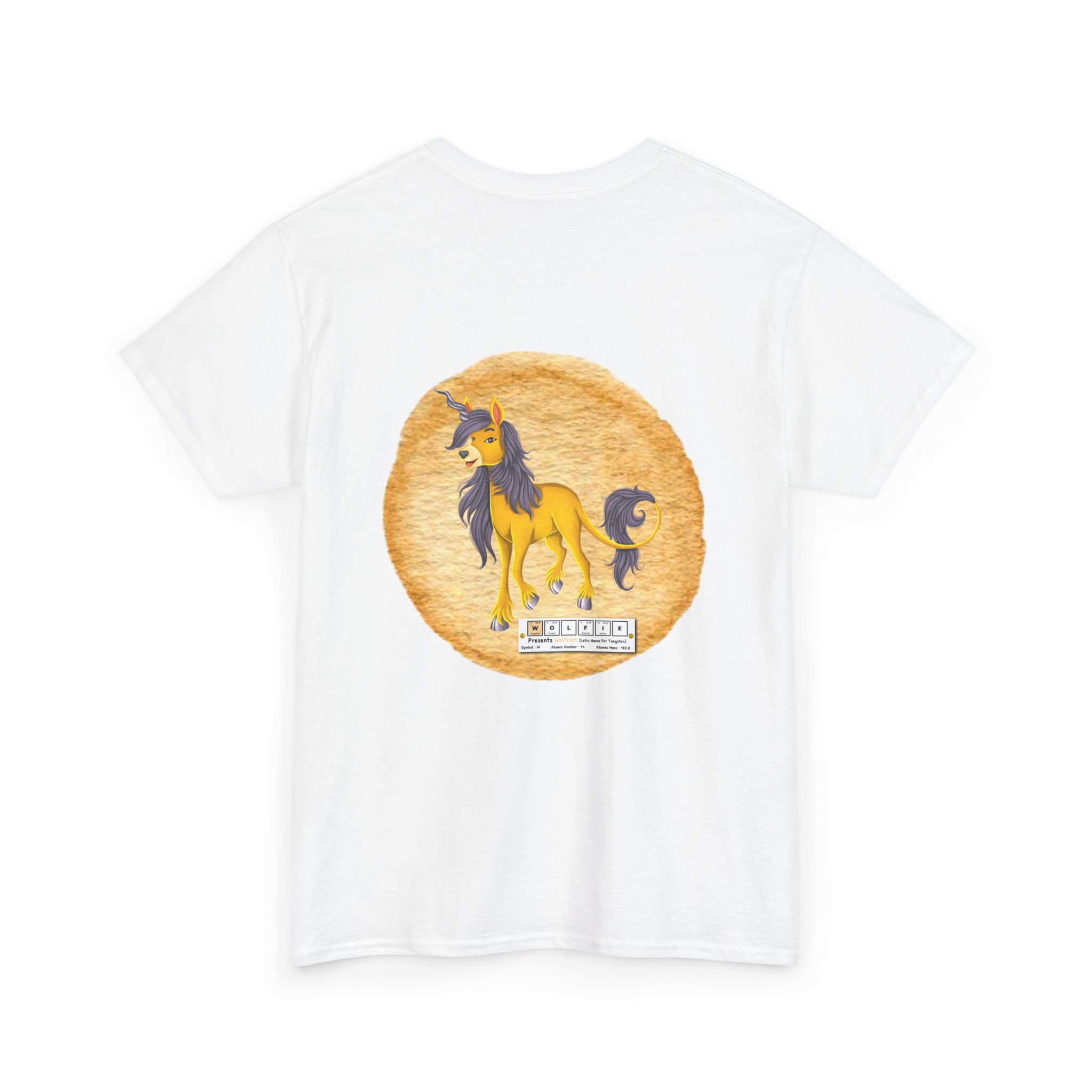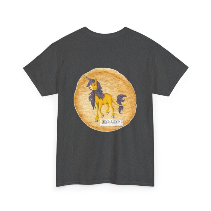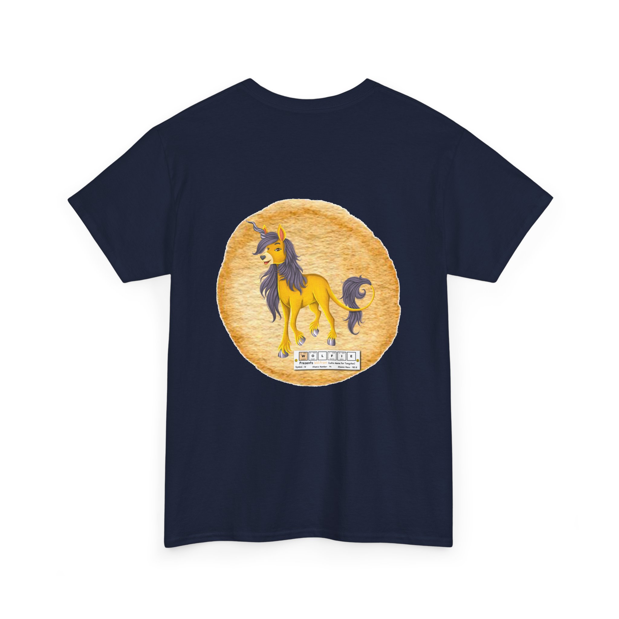 Wolfie Presents Tungsten Unisex Tee –  Graphic from Magical Elements of the Periodic Table – No Metal No Magic Logo on Front, Wolfie the Unicorn on the Back.