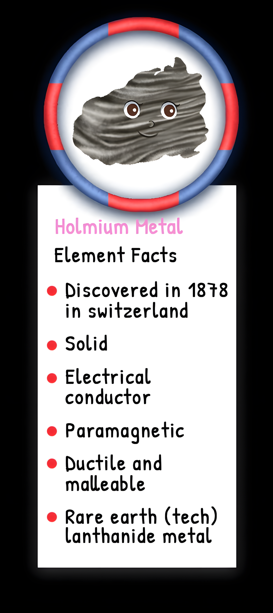 This article is brought to you by Sybrina Durant, the author of the middle grade picture book, Magical Elements of the Periodic Table Presented Alphabetically By The Metal Horn Unicorns. Learn More. In that book Holmium is presented by the unicorn, Holmia. Read Holmia’s Story.