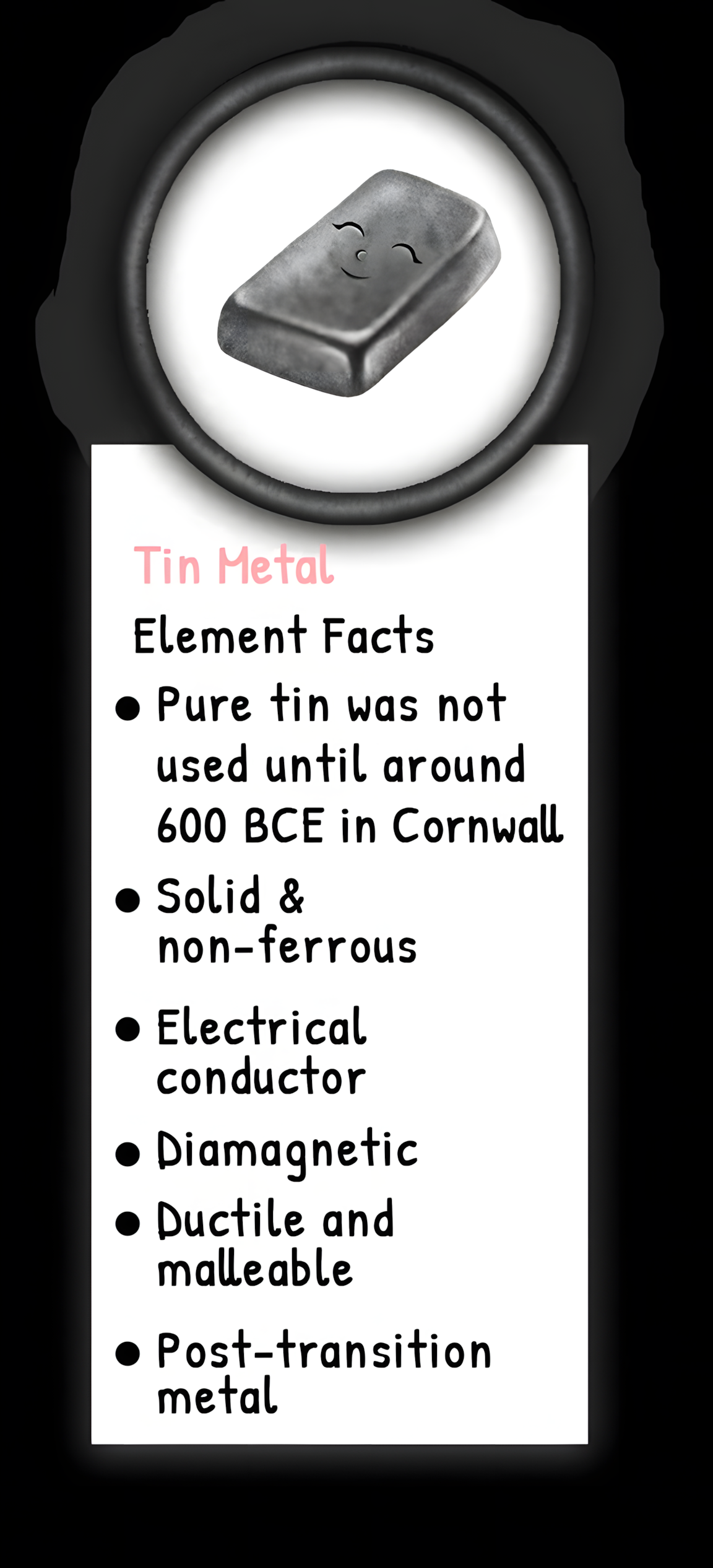 This article is brought to you by Sybrina Durant, the author of the middle grade picture book, Magical Elements of the Periodic Table Presented Alphabetically By The Metal Horn Unicorns. Learn More. In that book Tin is presented by the unicorn, Tinam. Read Tinam’s Story.