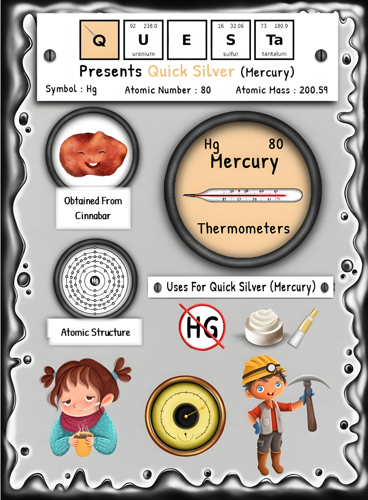 This article is brought to you by Sybrina Durant, the author of the middle grade picture book, Magical Elements of the Periodic Table Presented Alphabetically By The Metal Horn Unicorns. Learn More. In that book Mercury (Quick Silver) is presented by the unicorn, Questa. Read Questa’s Story.