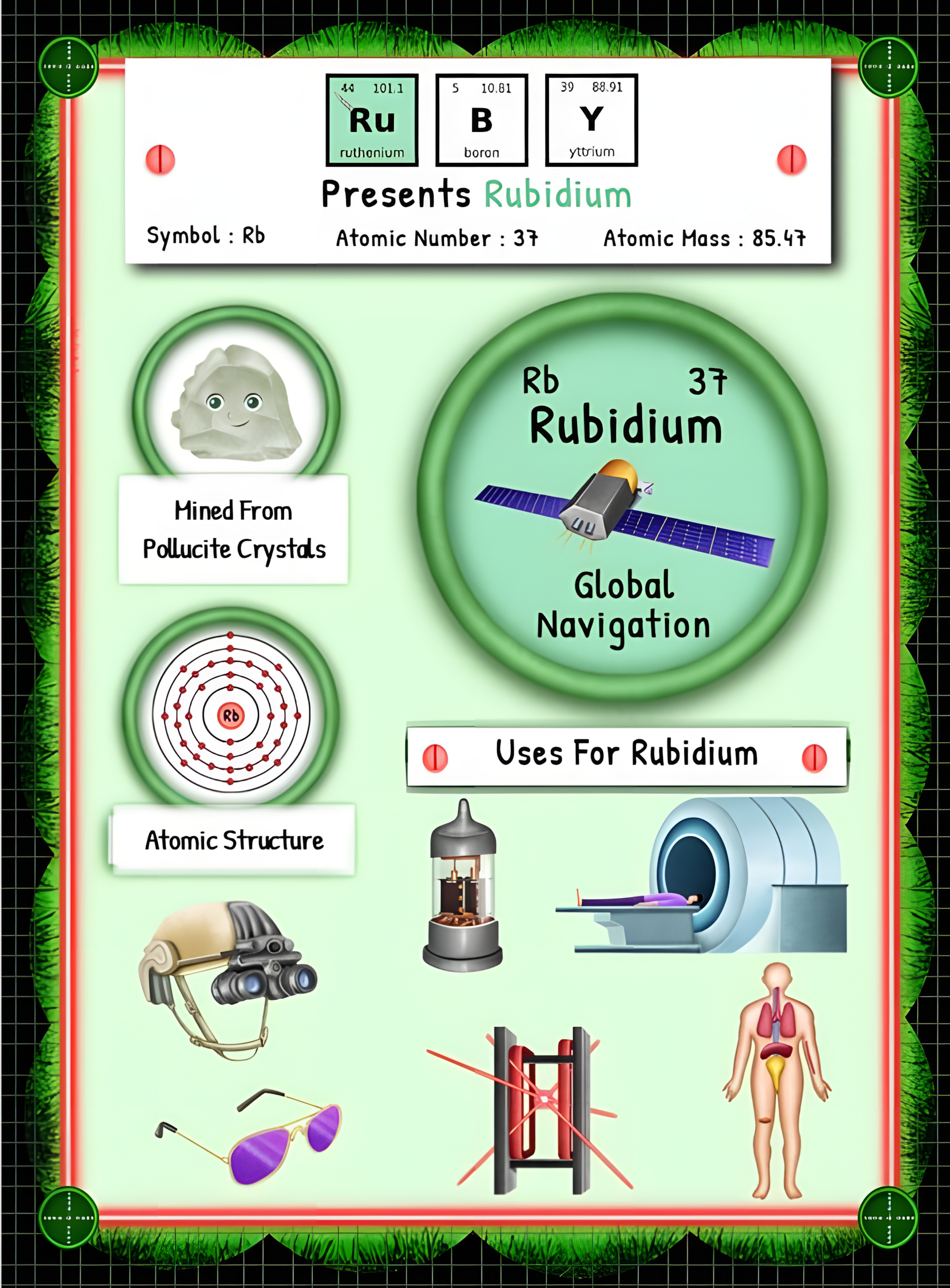 - Atomic Clocks: In the mid-1950s, rubidium’s remarkable resonance and stability made it an excellent candidate for atomic clocks. Rubidium atomic clocks became essential in scientific research, telecommunications, and navigation systems. Their higher accuracy, lower cost, and smaller size compared to traditional quartz-based clocks made them highly attractive.