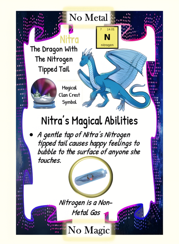This is the front side of the game card for Xena the Xenon Horned Unicorn. Click the pic to take a look at all the fun info on the back. Use it as a memorization tool, a trading card or as science class prizes and rewards.